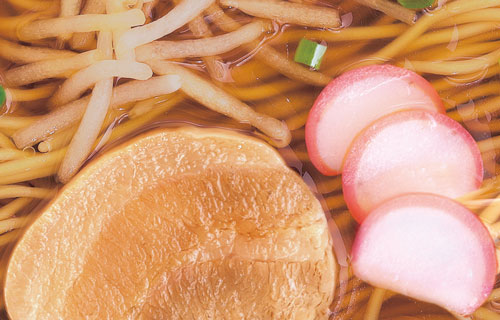 めん(小麦粉(国内製造)、食塩、大豆食物繊維)、スープ(しょうゆ、動物油脂、たん白加水分解物、ポークエキス調味料、食塩、チキンエキス、チキンエキス調味料、食用風味油、糖類、ミート風味調味料、野菜エキス、野菜ペースト、酵母エキス、昆布エキス)、かやく(味付豚肉、かまぼこ、モヤシ、ねぎ)/調味料(アミノ酸等)、酒精、かんすい、カラメル色素、増粘剤(加工でん粉)、クチナシ色素、酸化防止剤(ビタミンE)、紅麹色素、香料、香辛料抽出物、(一部に小麦・ごま・大豆・鶏肉・豚肉を含む)